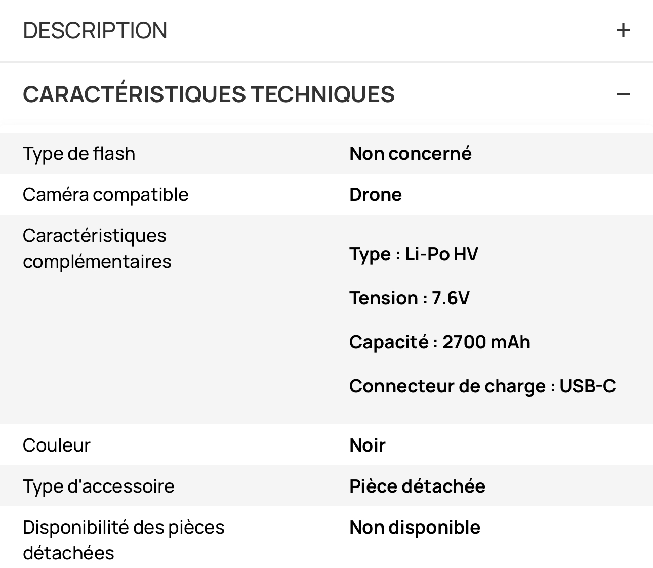 | Nom de l'article | Batterie intelligente pour Parrot anafi |