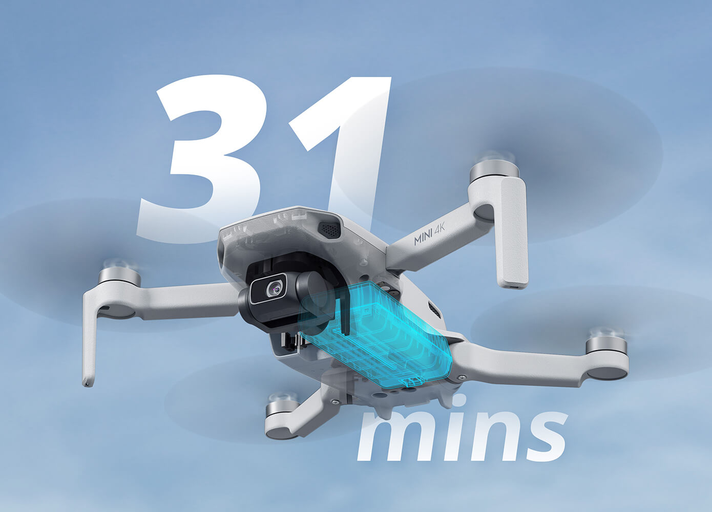 Bénéficiant d’une autonomie max. de 31 minutes, Mini 4K et Mini 2 SE offrent amplement de temps pour composer la photo parfaite.