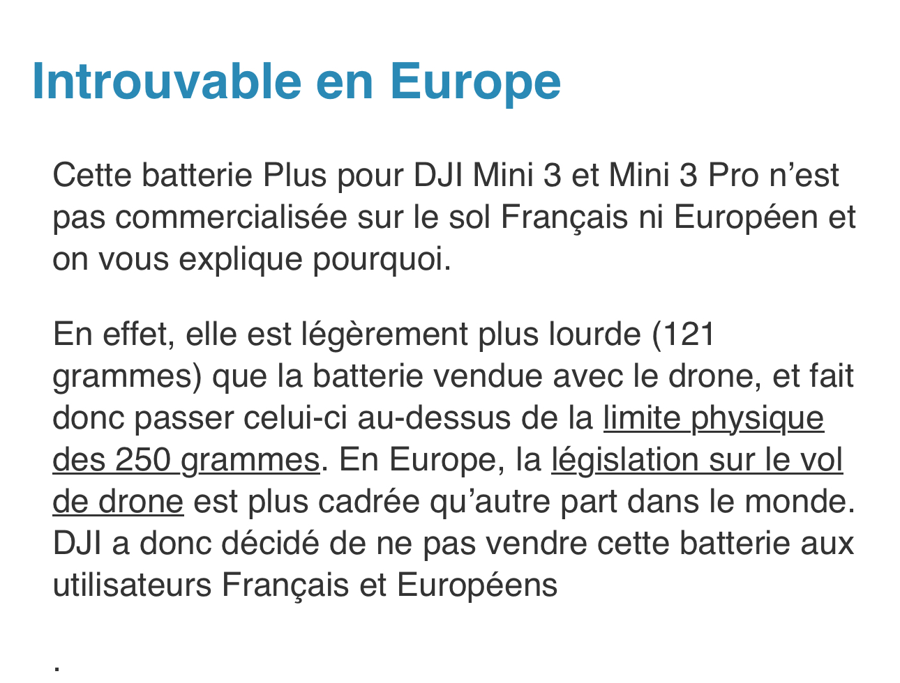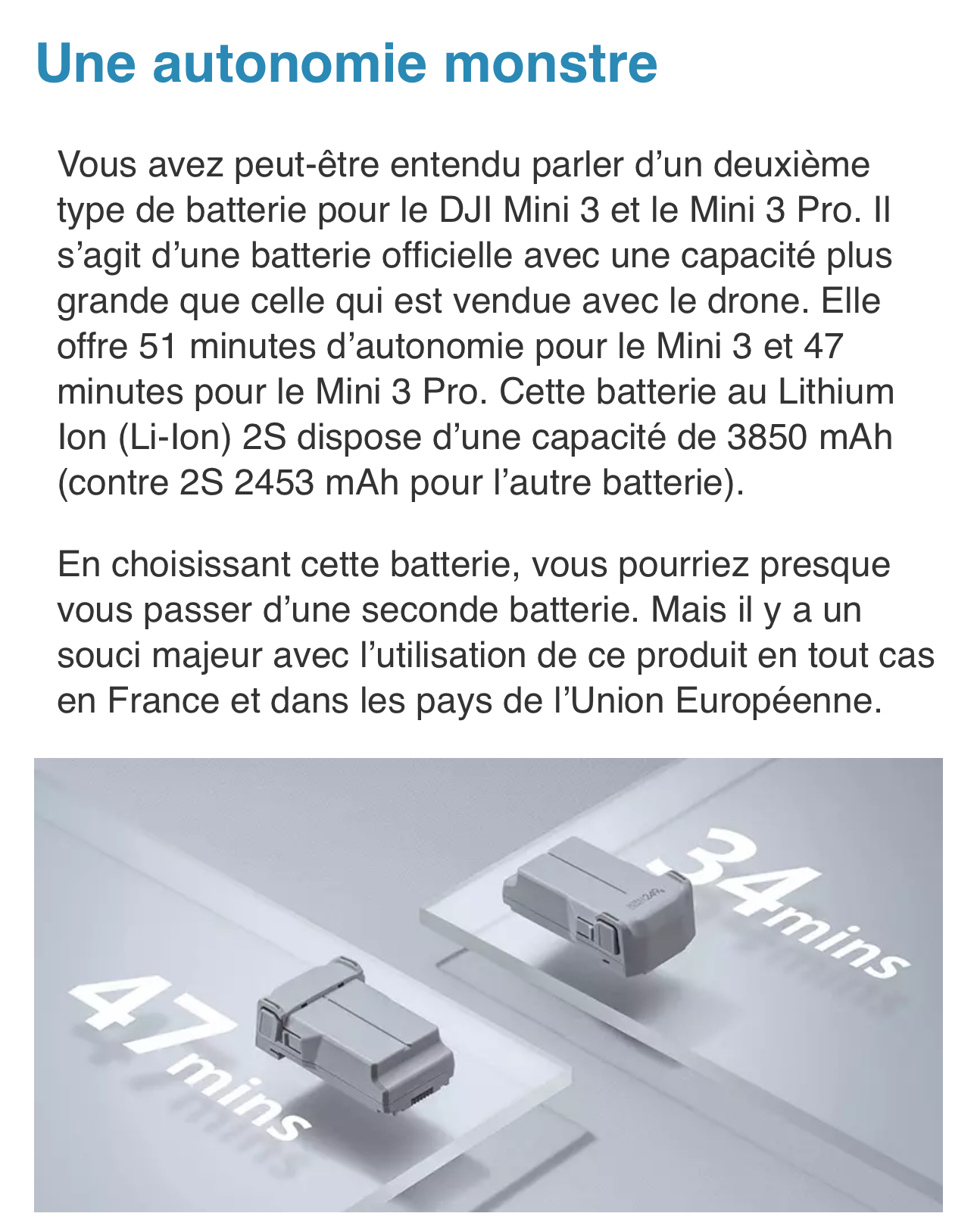 | Nom de l'article | Dji Mini 3 Pro Batterie Plus 5200mAh |