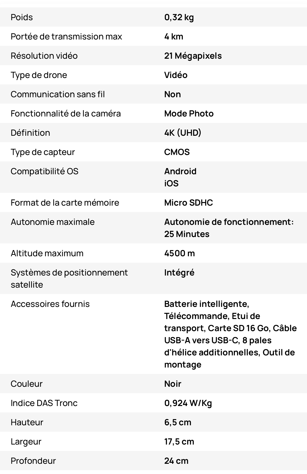 | Nom de l'article | Drone 4K Parrot Anafi Noir |